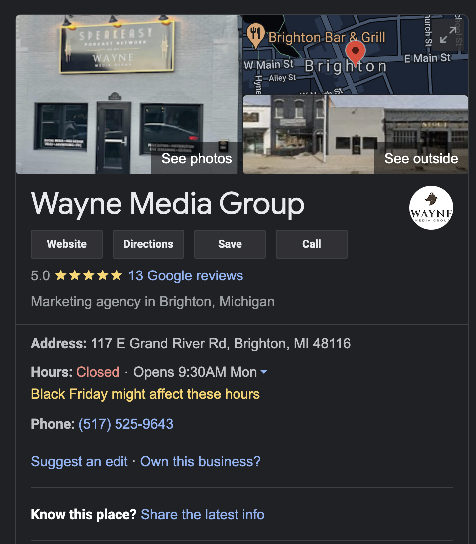 Accurate business information updates including hours, address, and phone